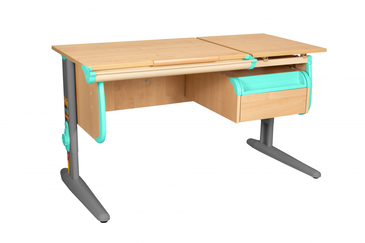 Парта Дэми СУТ-25-03 120 см раздельная с тумбой клен/аквамарин/серый с тумбой ТСН.04