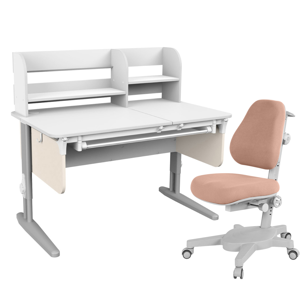 Комплект Дэми СУТ.62 PRO парта + кресло + надстройка + выдвижной ящик белый/кремовый/серый с креслом Armata светло-розовый